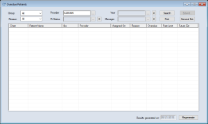 The Overdue Patients module identifies patients that need attention and ensures the dental care they receive matches the efficiency standards of your institution. Based on your institution’s requirements, you can define customized overdue conditions such as a missed a six-month checkup. When an overdue condition occurs, axiUm sends an internal message to the provider, patient manager, group manager, faculty, and any other user, indicating the overdue condition and associated patient. The assignment clerk also sees an overdue condition when assigning providers to patients. |