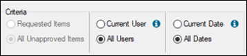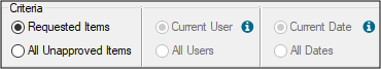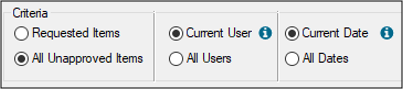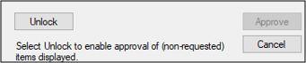 The Criteria filters default differently depending how the student provider is configured. Tip: You can specify workstation defaults for the user and date radio buttons when the Patient Approvals window is accessed from the status bar. These defaults are set from the Patients module > Patient Options window > Default Criteria for Date and Default Criteria for User fields. Note: If you select the All Unapproved Items radio button, the other radio buttons are enabled, but the Approve button is disabled and you cannot approve other items. However, if you have the correct permissions, you can click an Unlock button to authenticate and re-enable the Approve button. |