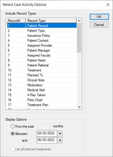 Note: The records included in this list are not based on Record# numerical order. They are based on your user level and are set up by your axiUm administrator, and some may not be present.