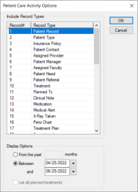 Note: The records included in this list are not based on Record# numerical order. They are based on your user level and are set up by your axiUm administrator, and some may not be present.
