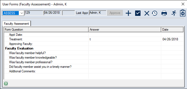 Tip: To mark a whole page as reviewed, right-click a question and select Page Reviewed. In the Date column, the time changes to the current time. If you updated the answer and it now requires approval, the text displays in blue. If suspended, the form displays in the list with gray text. If unsuspended, the form is active and no longer displays with gray text. The Date list displays all the form’s change dates. |
