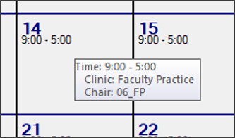 Note: No additional tasks are available from the Monthly tab. The Appointment Expert allows you to search for available times in the Scheduler and book appointments. The patient’s name displays in purple text to indicate they are signed in and a blue Patient Arrival indicator displays on the provider’s status bar: The patient’s name displays in red text to indicate they are checked in to a clinic. The patient’s name displays in the Scheduler in gray text to indicate they are checked out of the clinic. Tip: If checked out by mistake, right-click the appointment and select Undo Patient Check Out. The appointment text displays in black text to indicate the patient is seated in the clinic. Chart requests control access to paper charts so only one person may use a chart at one time. In most cases, an automatic chart request is sent when the appointment is scheduled, but you can make manual chart requests when necessary. Note: Only approved planned treatments display. When necessary, you can reassign a provider’s appointments to another provider. Examples: You can reassign an entire day’s schedule to another provider or move all appointments to the other chair. Tip: You can also right-click and drag to select a larger time block. The appointment text displays in blue to indicate that the appointment is confirmed. An appointment can be failed when the patient does not arrive for the appointment and did not provide cancellation notice. X-ray technicians often need to add details about x-rays taken for the selected patient. Other providers can view those x-rays and details. Note: This option is only enabled if the appointment is a hygiene type appointment code. Tip: The window only displays if the appointment is today or a future date. The window cannot display if the appointment is past and the X-Rays Taken checkbox is deselected. Note: If the patient does not have another appointment, a No Next Appointment Warning window displays and prompts you to add one. Click Yes or No as necessary. Note: The right-click option and window are managed from the Scheduler Options window > Patient/Family Appointments Window section > Mode field. |