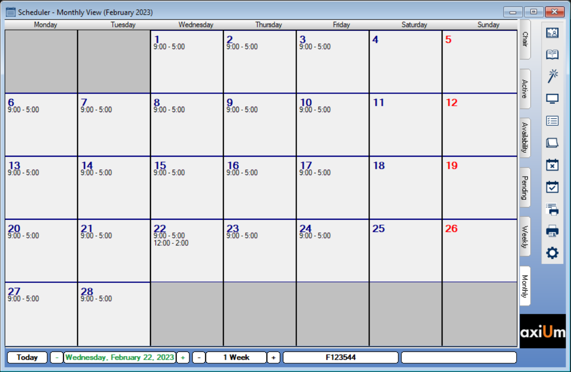 The Scheduler module is a core axiUm module which allows you to book and manage appointments within your institution. It is adaptable to the needs of your institution, and can be customized for your specific workflows, clinic layouts, and appointment structure. Depending on your institution’s desired workflow, the Scheduler module allows providers and staff to view clinic schedules, book appointments, and manage clinics from one of two different perspectives:
