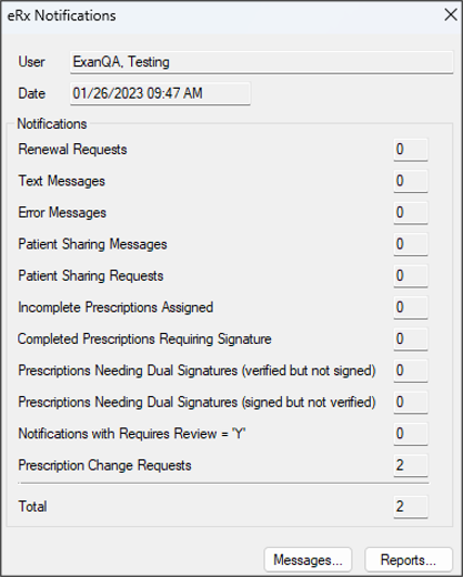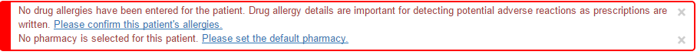 Tip : You can also click the drop-down arrow ( The axiUm eRx window displays with the selected patient’s information. Note: If accessing eRx for the first time or with a new patient, no allergy or pharmacy information displays, and you are prompted to enter them. The eRx indicator displays on the status bar when an eRx notification arrives.