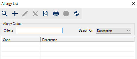Allergy List WindowThe Allergy List window allows you to search for and manage your list of allergies.