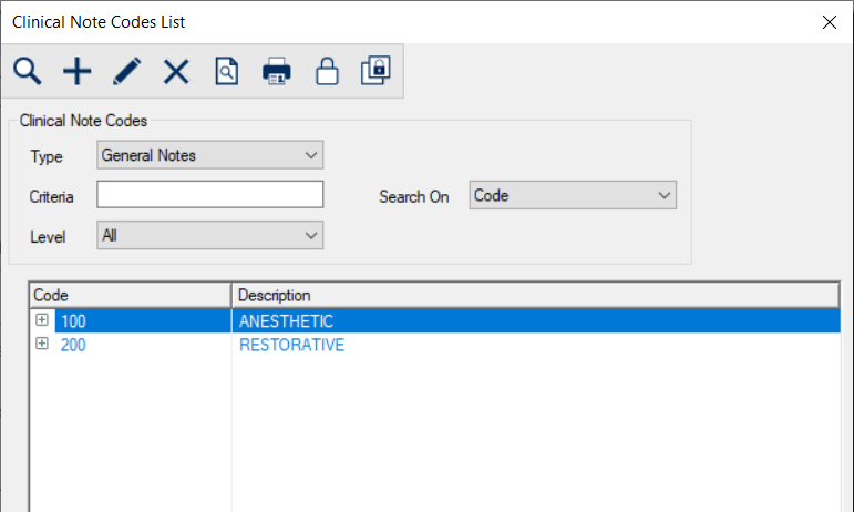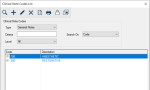 The Clinical Note Codes List window allows you to specify a list of clinical note codes.