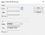 The Copy Clinical Note Access window allows you to copy access between clinical notes quickly. It displays when you open the Clinical Note Codes List window, select a listed clinical note and click the Copy Level Access ( ) icon.
