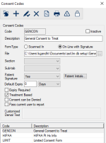 (Maintenance > EHR > Consent Codes)