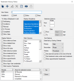 Treatment History Views WindowThe Treatment History Views window allows you to configure ![]()