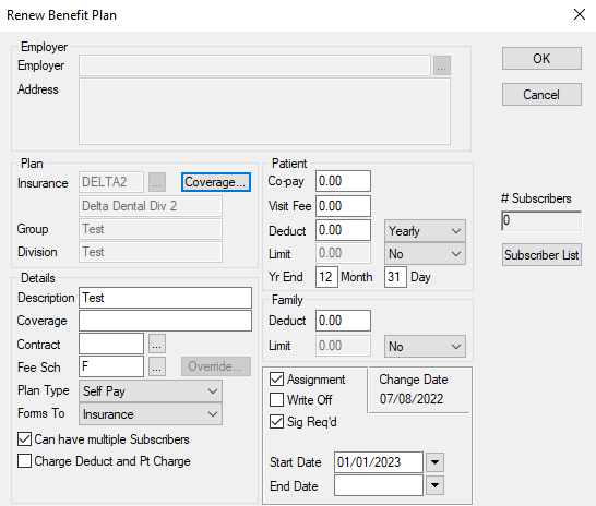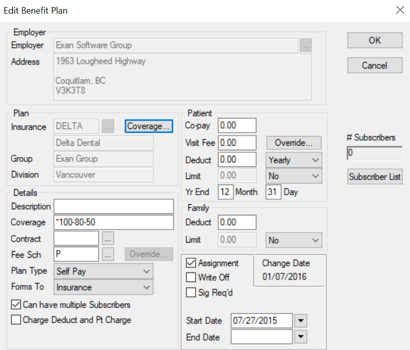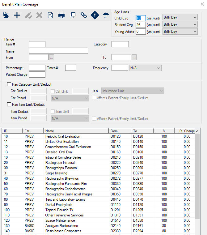 (Maintenance > Insurance > Benefit Plans > Edit Benefit Plan)