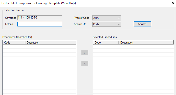 - Click the Fee Schedule ellipsis to display the Fee Schedule Codes window and select a different fee schedule.