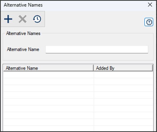 A button that displays the Alternative Names window and allows you to specify additional payer names if a payer name on a remittance response does not exactly match the insurance company listed in axiUm. |