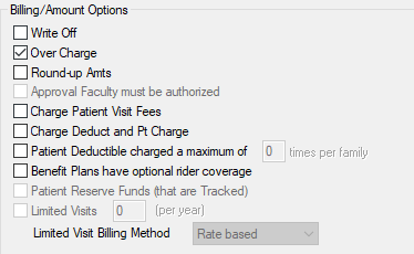 Selecting the check box enables the field that indicates the number of visits allotted per year, as well as the Limited Visit Billing Method drop-down list.