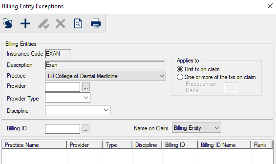 2006, ADA 2012, and HCFA forms, if the Name on Claim drop-down list is set to Billing Entity in the Claim Information area of the Billing