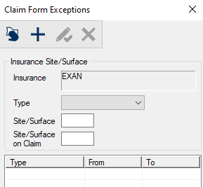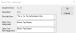 The options in this drop-down list are defined in the Claim Form Codes window.