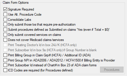 Selecting this checkbox enables the Procedures button, used to specify the procedure(s) that require ICD information.