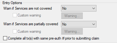 This check box is enabled when the Warn if Services are not covered drop-down list is set to anything other than No.