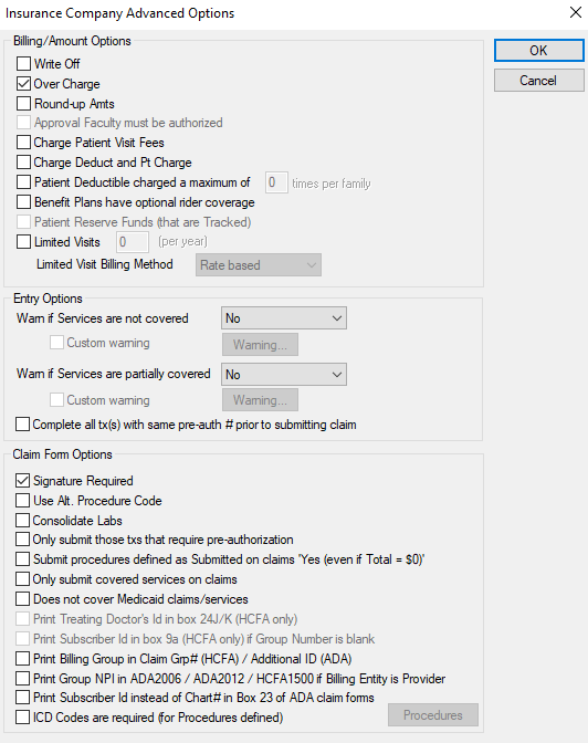 (Maintenance > Insurance > Insurance Company List > Insurance Company > Advanced > Procedures)