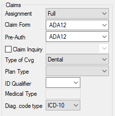This drop-down list identifies the type of claim form to print claims on for this insurance company.