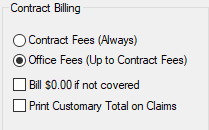 A check box that, when selected, indicates that Procedure Codes configured with the Submitted on Claims drop-down list set to Yes (even if Total= $0) are submitted for this insurance company.