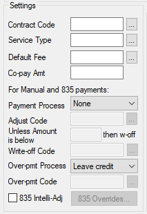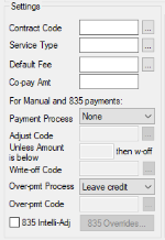 Note: By default, this field applies to manual and 835 payment entries. If the 835 Intelli-Adj check box is selected, then this field is only used for manual payments.