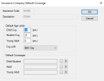 The Insurance Company window allows you to configure settings for insurance companies in axiUm.