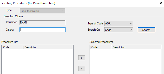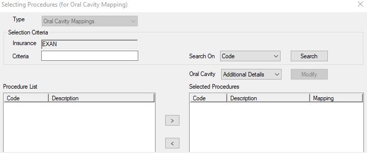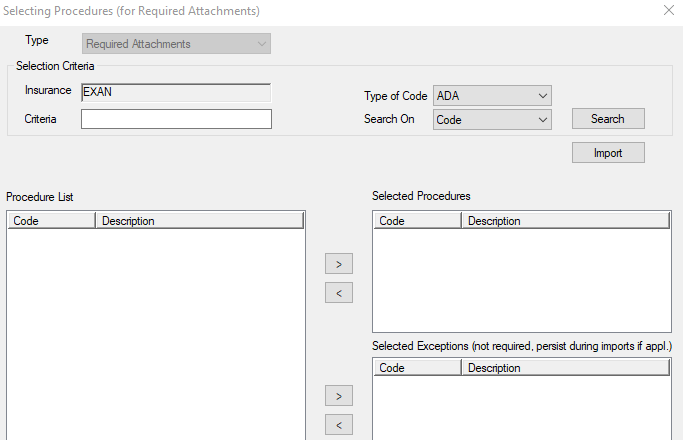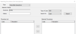 Clicking the buttons displays the Selecting Procedures (requiring ICD codes) Window and allows users to specify the procedure codes that require ICD Codes.