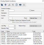 A check box that, when selected, indicates that the Patient Assignments window will indicate that the provider has an overdue condition. This is to notify the group manager and have them decide if the condition should be cleared before the next patient assignment.