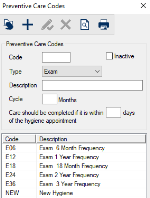 A drop-down list of that indicates the type of preventive care cycle: - Exam: Indicates that this preventive care code can only be used for exam appointments.
