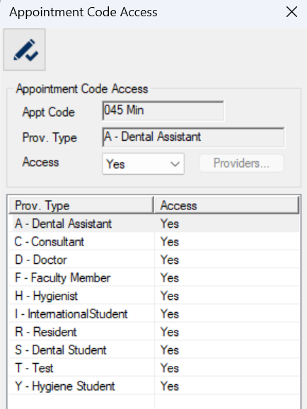 - Yes: The provider type has full access to the appointment code.