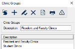 Clinic Groups WindowClinic groups are used to group multiple clinics together. They can be used by all scheduling modes as well as the Appointment Expert and Operatory Monitor. The Clinic Groups window allows you to create and manage the list of clinic groups, and specify the clinics within them.