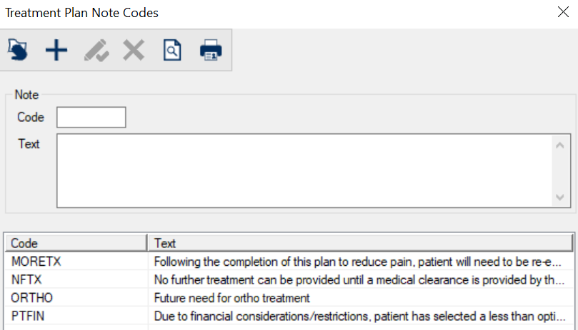 Maintenance > Tx Plan > Treatment Plan Note Codes
